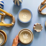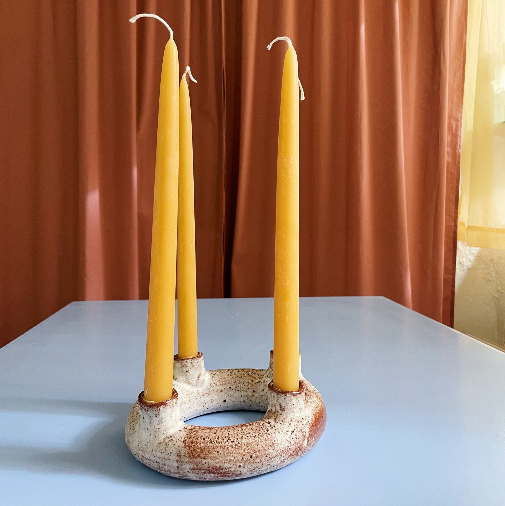 Mørkbrun stentøjsler glasert med en hvid mat glasur.