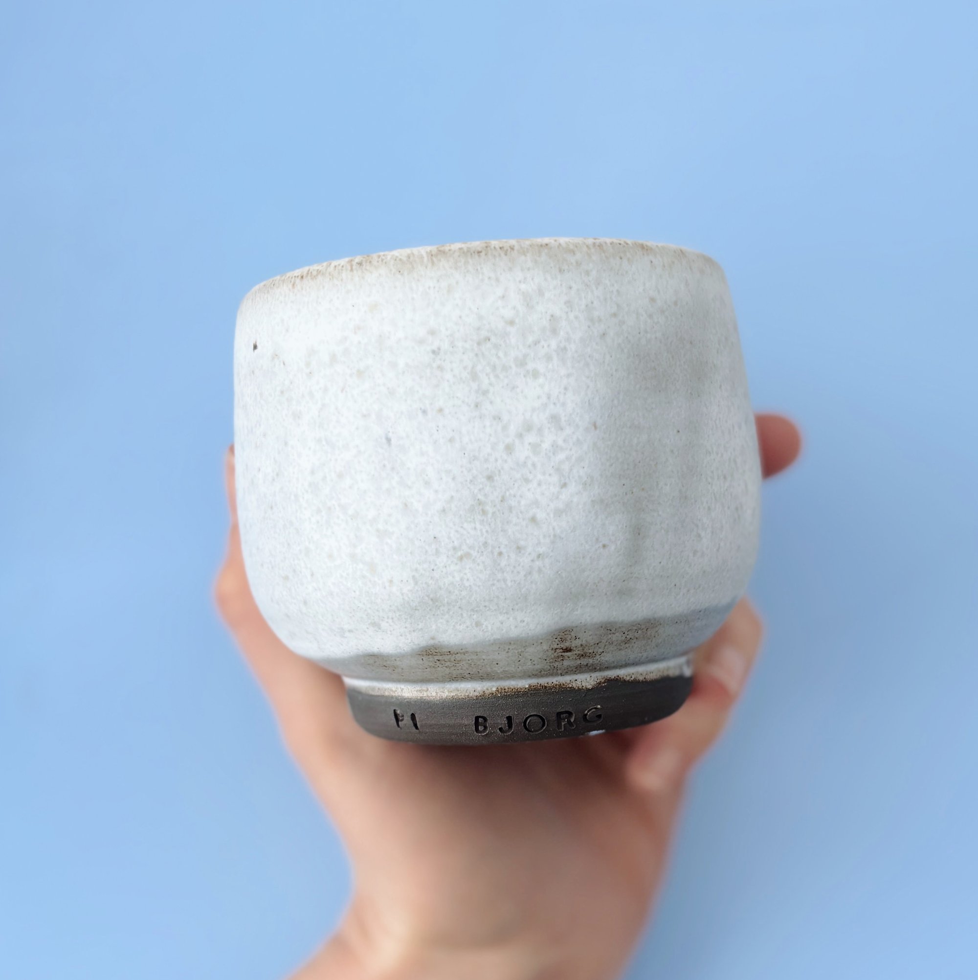 Thrown black stoneware clay with a super thick matt white glaze.