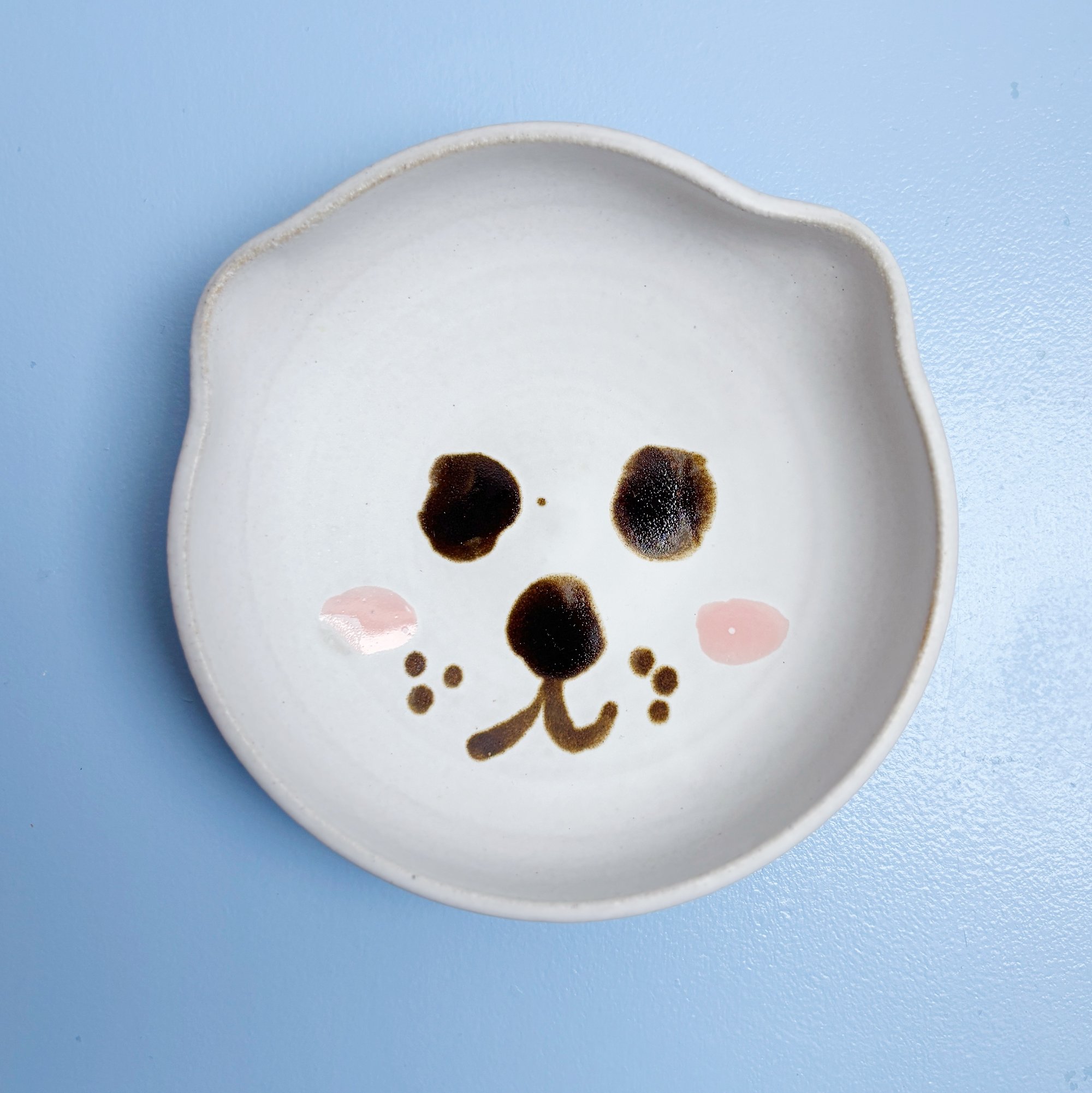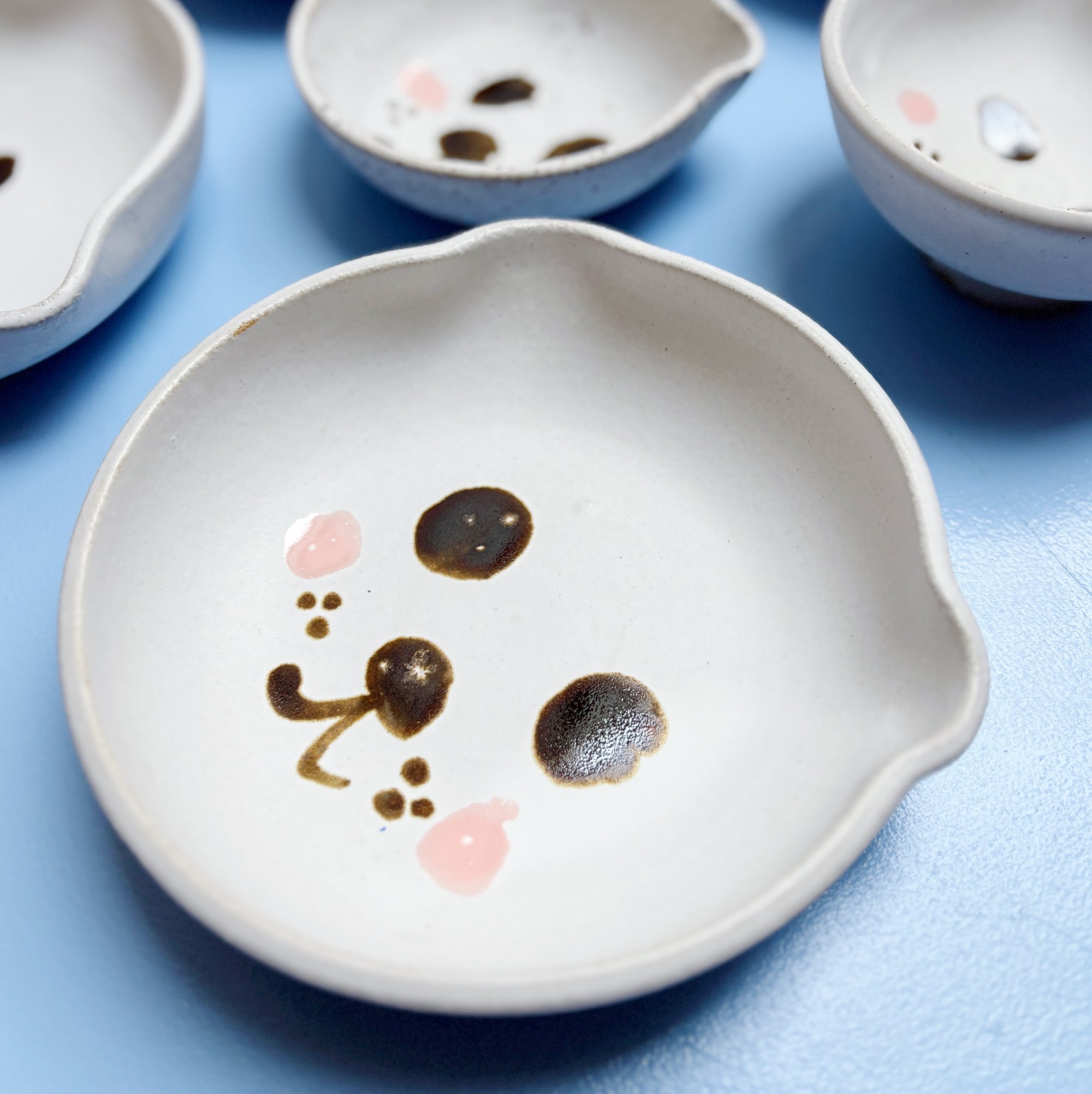 Drejet stentøjs skål i en smuk hvid mat glasur og håndmalet dekoration.